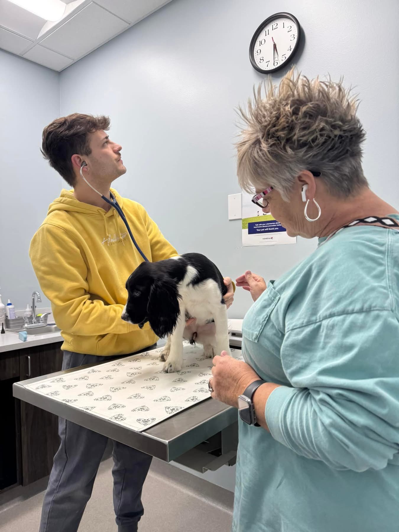 Vaccine series, parasite screening, nutritional guidance, microchipping, and spay/neuter planning.